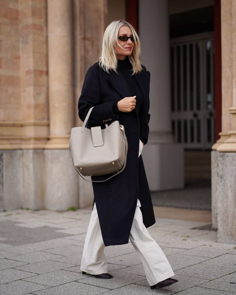 Беспроигрышное сочетание черного и белого всегда актуально. В 2025 году этот дуэт особенно популярен не только в аксессуарах, но и в образах целиком. Добавьте черно-белые акценты в свой образ, чтобы придать ему графичности и стиля. Или подберите светлые брюки к черному пальто – образ получится ярким, несмотря на ахроматическую гамму.