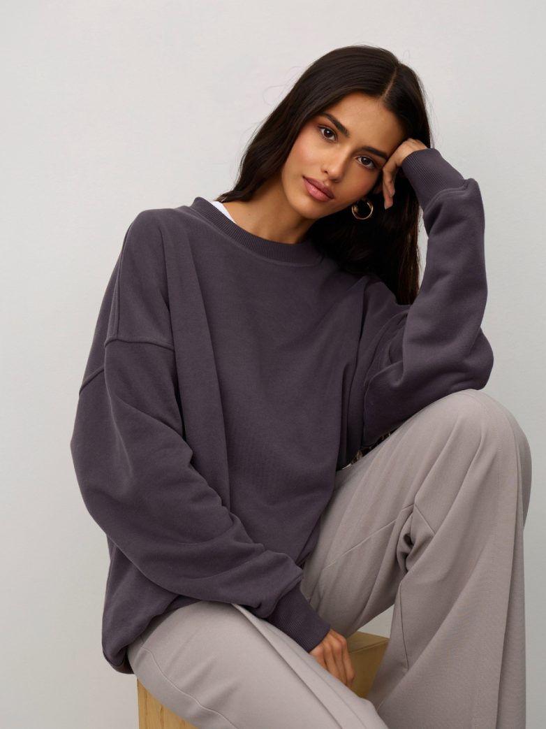 Объемный свитер, например, бордовый (Арт. на WB: 261832642) или белый (Арт. на WB: 252002462), надевай с классическими брюками, а в качестве необычной детали выступит шелковый платок на шее. Для более гламурного эффекта можно надеть берет или кепку!