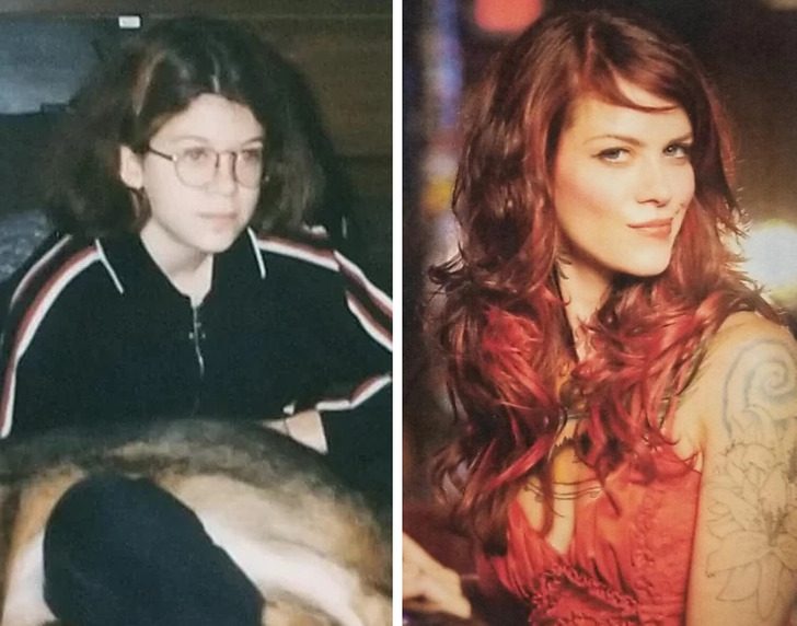 «В 29 и 40 лет. Мои брови выпали из-за чрезмерного выщипывания, поэтому сейчас они нарисованы»