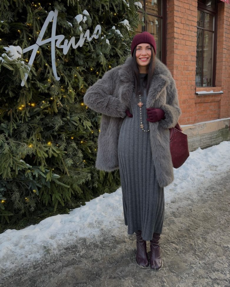 Шуба в холода превращается в едва ли не самую важную вещь в гардеробе. Соедините ее с трикотажным платьем, сапогами, сумкой, теплыми аксессуарами и очаровательный образ на каждый день готов!