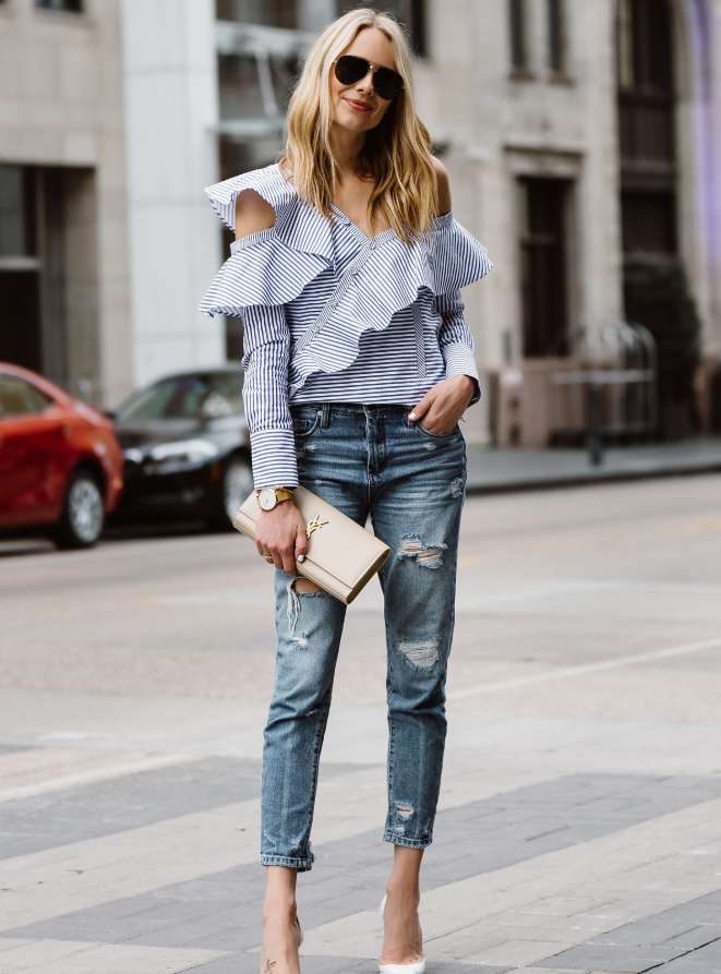 Блузки и топы с асимметричными вырезами смотрятся современно и элегантно. Особенно популярны модели с открытым одним плечом. «Такие вещи хорошо сочетаются с джинсами, юбками-карандаш или широкими брюками, очень успешно они смотрятся в вечерних и люксовых вариантах», — говорит эксперт.