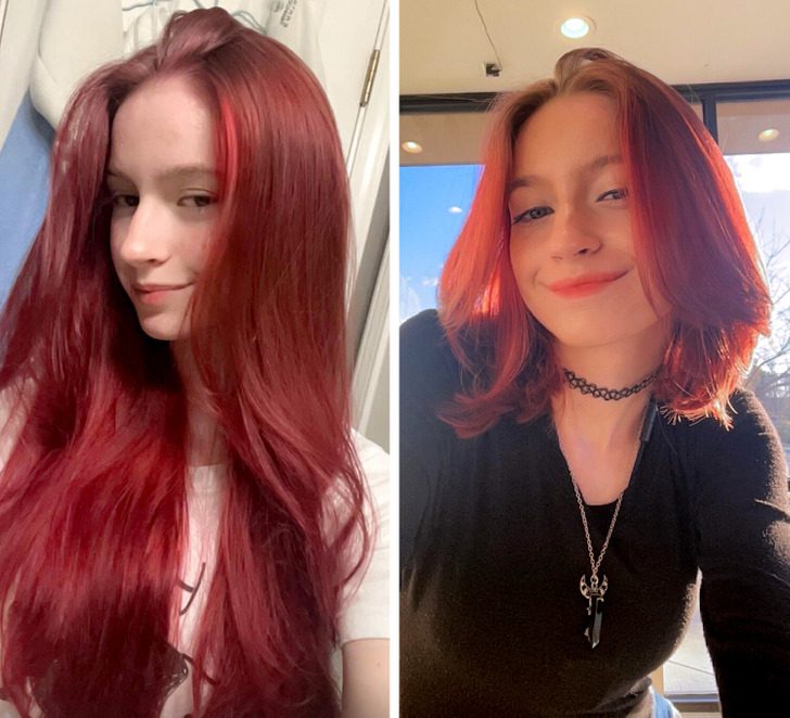 «Мне никогда раньше не позволяли стричь волосы коротко, а теперь мне 18. Они казались очень поврежденными, поэтому, наконец-то, я их подстригла»