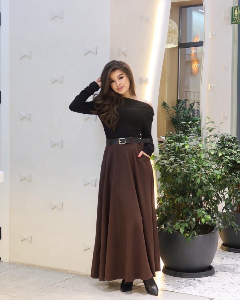 Длинные юбки – тренд 2025 года! Чтобы создать максимально эффектный и женственный сет на зиму, выбирайте расклешенную модель, которая образует красивые мягкие волны.