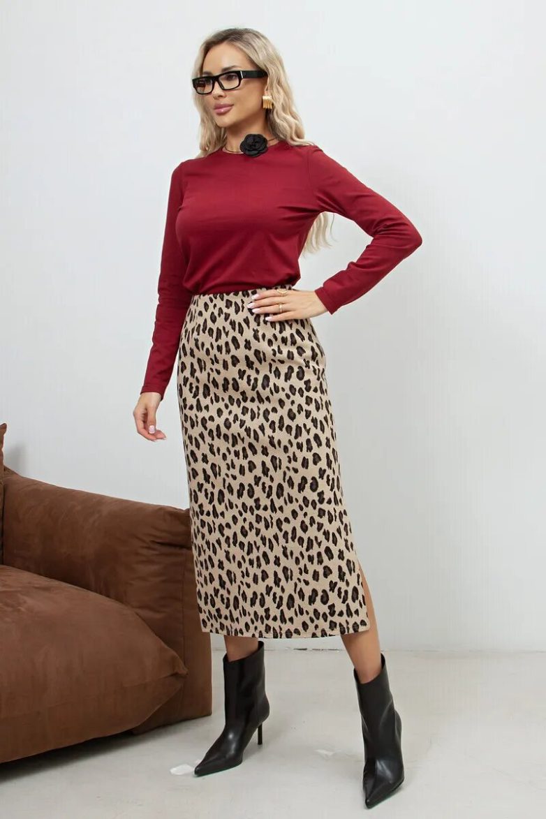 Принтованная юбка придется по вкусу смелым и уверенным в себе женщинам. Леопардовый рисунок не навредит модному имиджу, если все детали ансамбля будут лаконичного кроя.