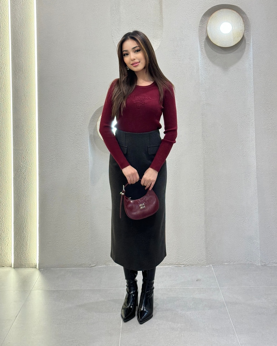 Юбку-карандаш очень просто стилизовать. Бордовый «верх» заметно освежает образ, добавляет ансамблю аристократическую нотку.