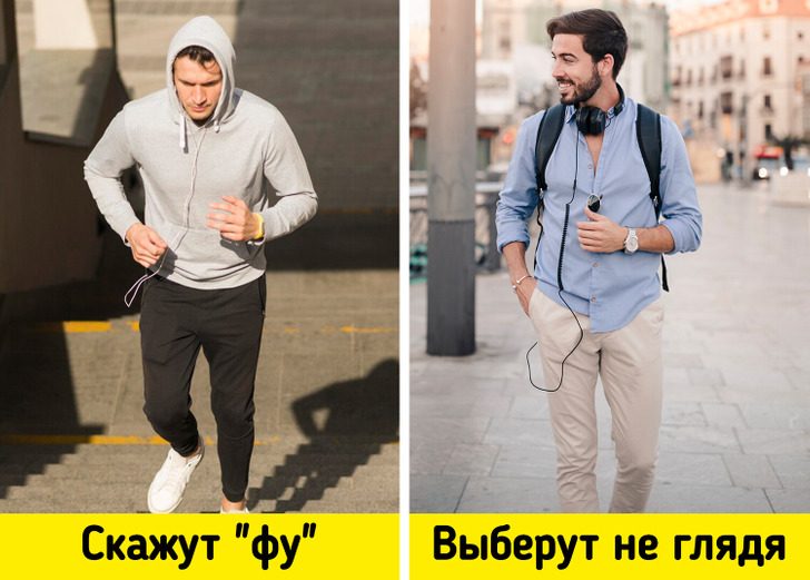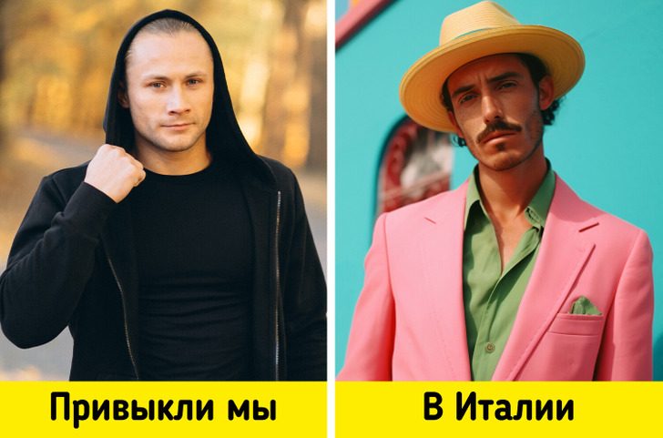 Все итальянские мужчины приходят в спортзал в костюмах или повседневной одежде и уходят оттуда в них же. Перед тренировкой они переодеваются, после принимают душ и снова переодеваются. Зато в спортзале они позволяют себе достаточно броскую одежду: итальянцы не боятся очень обтягивающих, ярких маек и велосипедных шорт.