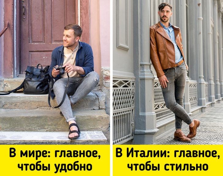 Обувь, которую носят мужчины в Италии, очень разнообразна по стилю, но у нее есть одна общая черта: сдержанный дизайн, который привлекает внимание и вызывает желание сделать комплимент. Итальянцы предпочитают мокасины вместо сандалий и шлепанцев летом. А если они соберутся на пляж, то лучше наденут кроссовки. Туфли на шнуровке предназначены для рабочей недели. По пятницам или выходным предпочтение отдается мокасинам без носков. С зауженными брюками это выглядит особенно стильно.