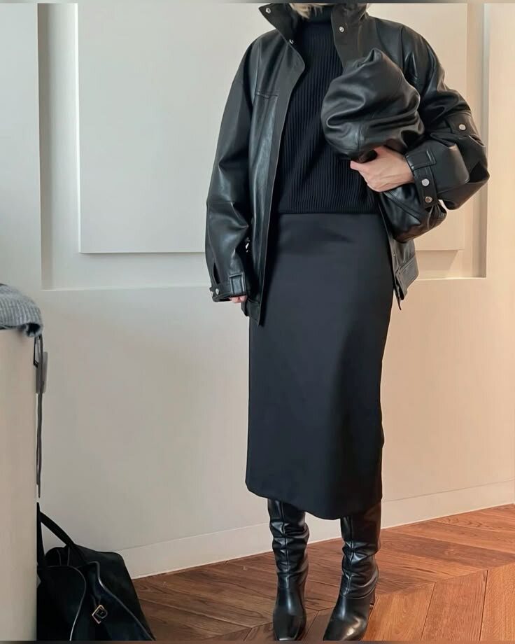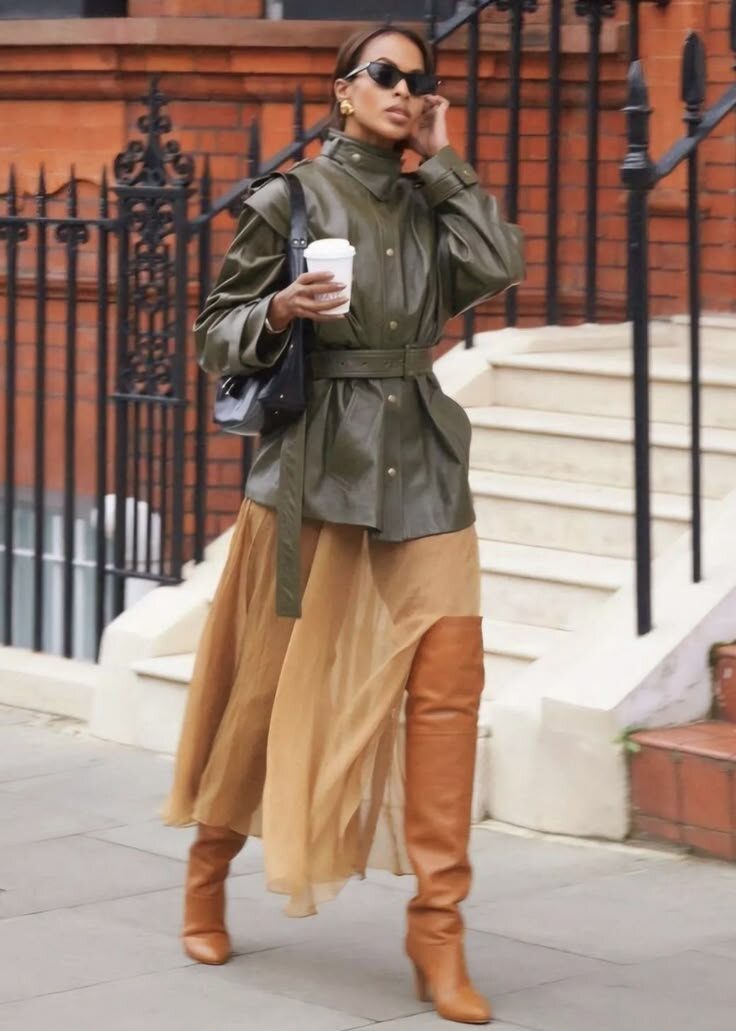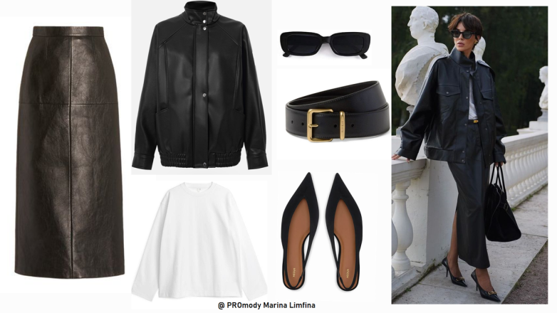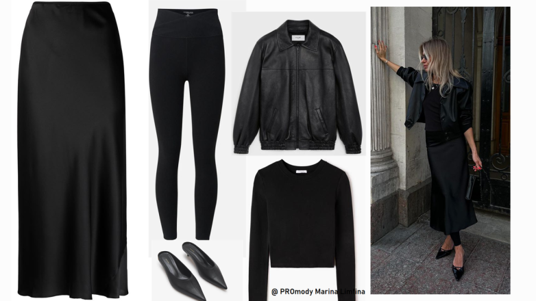 Интересная стилизация остается самым вдохновляющим развитием моды на сегодня, брюки с юбкой достаточно часто можно увидеть, сегодня хочу предложить собрать в комплект легинсы+ юбка в длине миди или мидакси + лонгслив и кожаная куртка/жакет
