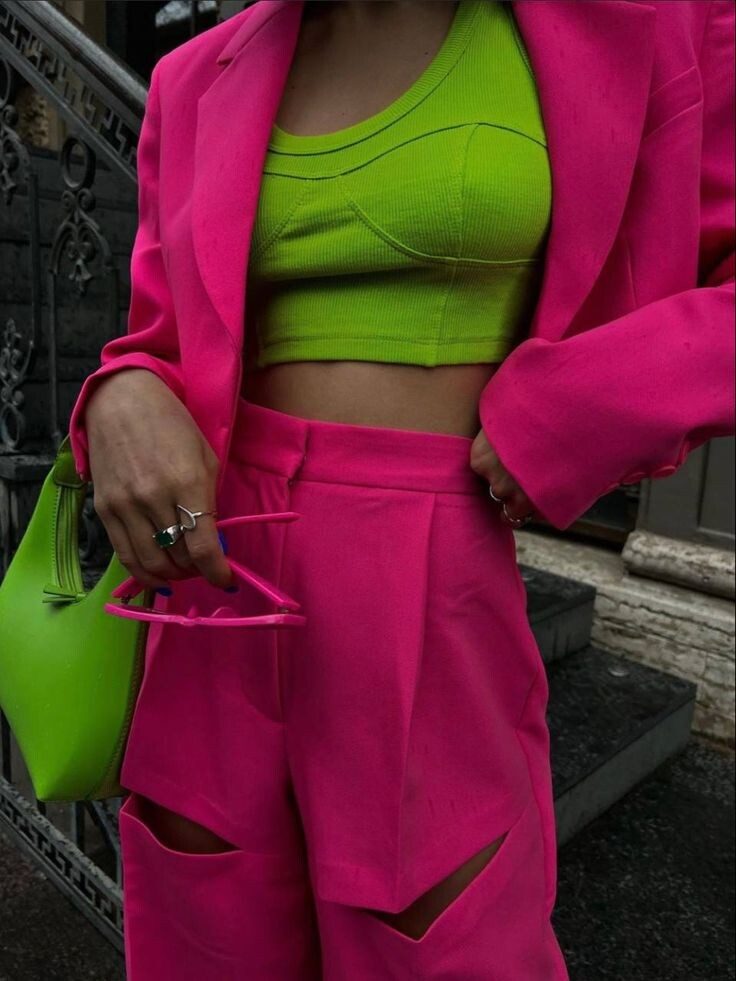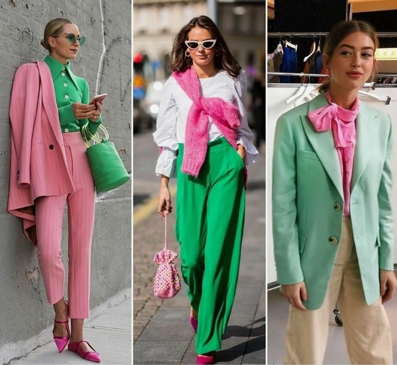 В 2025 году на модную арену триумфально возвращается конфетно-розовый, но в совершенно новом прочтении. Теперь он не солирует, как когда-то в стиле «Барби-кор», а выступает в гармоничном дуэте с оттенками зеленого, создавая неожиданный и свежий образ. Это смелое сочетание, вдохновленное цветущими садами и сочной зеленью лугов, позволяет добавить в гардероб нотку романтики и легкости, при этом оставаясь в рамках актуальных трендов. Конфетно-розовый, словно нежный бутон, распускается на фоне глубокого изумрудного, освежающего мятного или приглушенного оливкового, создавая эффектный контраст и подчеркивая женственность.