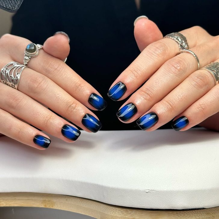 Темная аура в маникюре — идеальный способ добавить в свой образ загадочности. Контрастное сочетание оттенков и эффект глубины делают такой дизайн выразительным и запоминающимся. Просто вау!