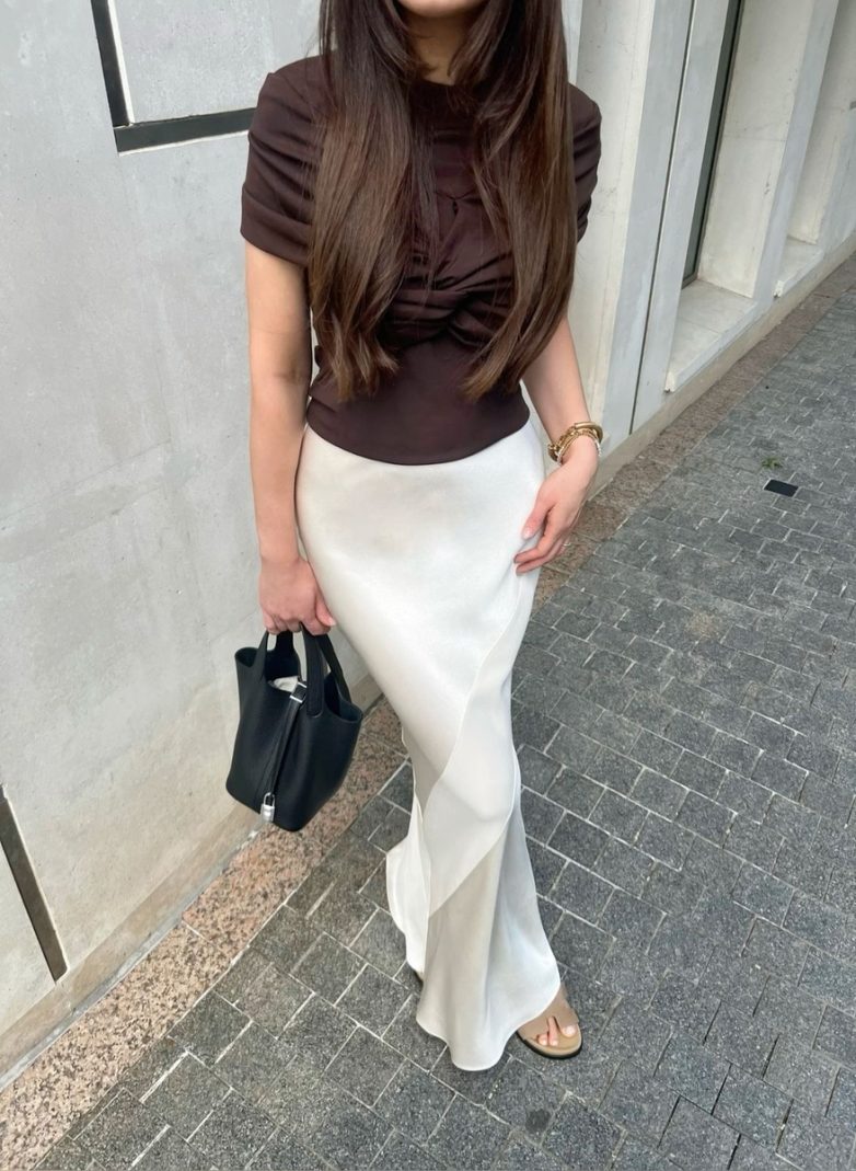 Юбки-карандаш нравятся нам за то, что они облегают и подчеркивают нашу фигуру, при этом выглядят скромно. Такая модель невероятно смотрится с так называемыми топами «Афины», популярными в 2025 году, или лонгсливами с разными видами драпировок.