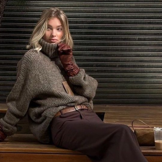 Классическое базовое сочетание, которое всегда к месту! Особенно стильно выглядит кожаный вариант юбки с мягким объемным свитером благодаря разности фактур.