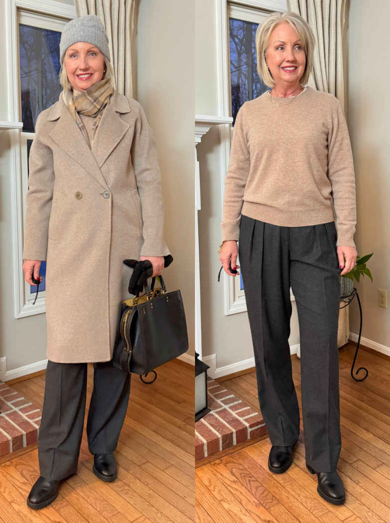 Иногда пальто может выглядеть очень громоздко и визуально портить фигуру, особенно с годами, когда у многих женщин после менопаузы появляется лишний вес. Если хотите, чтобы пальто вас стройнило обратите внимание на модели с поясом.