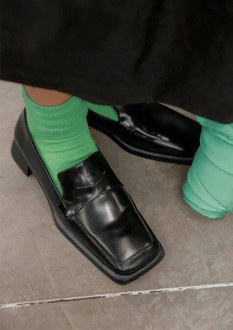 Если хотите добавить немного винтажной эстетики, сочетайте лоферы с высокими гольфами – это отличный вариант для образов с юбками или шортами.