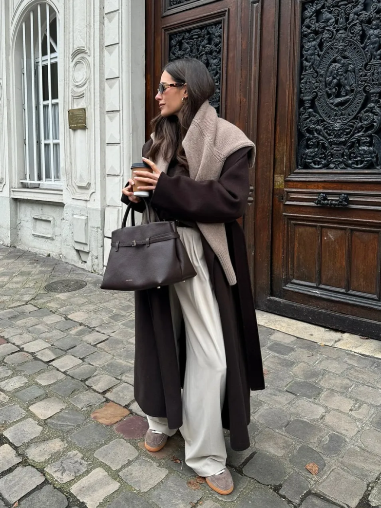 Классическая элегантность коричневого пальто в этом сезоне открывает двери для смелых экспериментов. Например, можно дополнить свой образ яркими аксессуарами или носить с ним нейтральные оттенки, чтобы создать целостный и гармоничный вид.Этот цвет не только прекрасно сочетается с белым, создавая эффект «шоколад со сливками», но и прекрасно уравновешивает глубокие оттенки красного, такие как бордовый, а также оранжевый и салатовый.