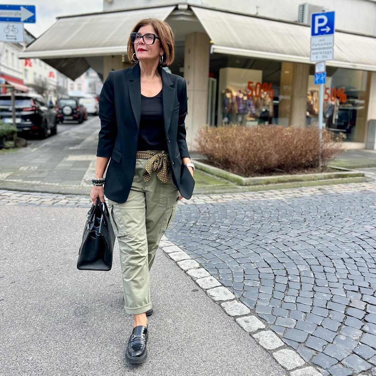 Это практичное решение для дам 50+. Даже в дождливую погоду вся грязь попадает на обувь, которую можно протереть, но брюки при этом остаются сухими и чистыми.