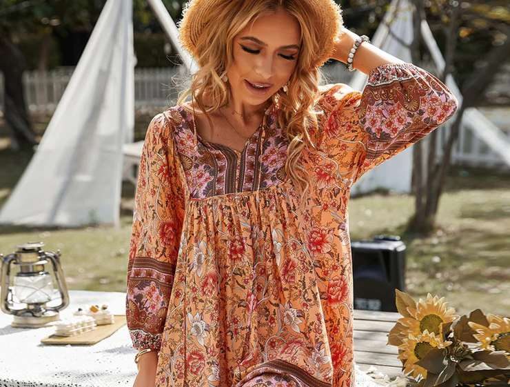 Базой весеннего бохо-образа всегда остается свободное платье из натуральных тканей. Оно может быть: миди или макси длины — струящиеся силуэты подчеркивают женственность и ощущение внутренней свободы.