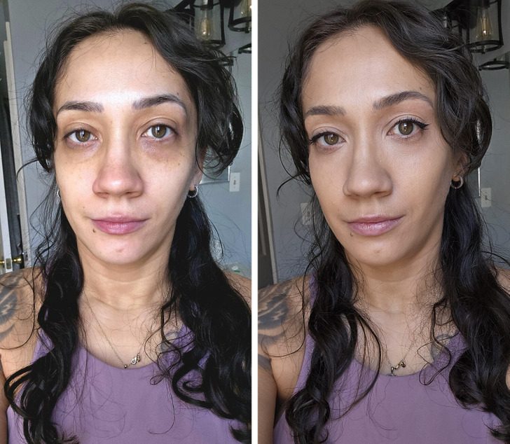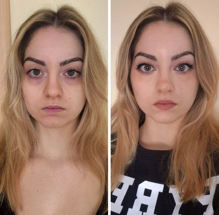 «Мое лицо совсем без косметики и с полным макияжем»
