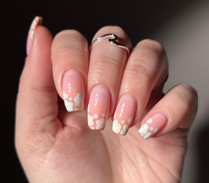 Тренд на маникюр в виде энергетического поля — ауры — появился несколько лет назад. Дизайн заключается в том, что на ногтевой пластине рисуются цветные круги: они могут быть четкими или размытыми, переходить в технике градиента. Для такого маникюра можно выбрать любые оттенки, но изначально подразумевалось, что вы рисуете то, как видите собственную энергетику. Стилисты подчеркивают, что данный тренд больше остальных способствует самовыражению прекрасных дам.