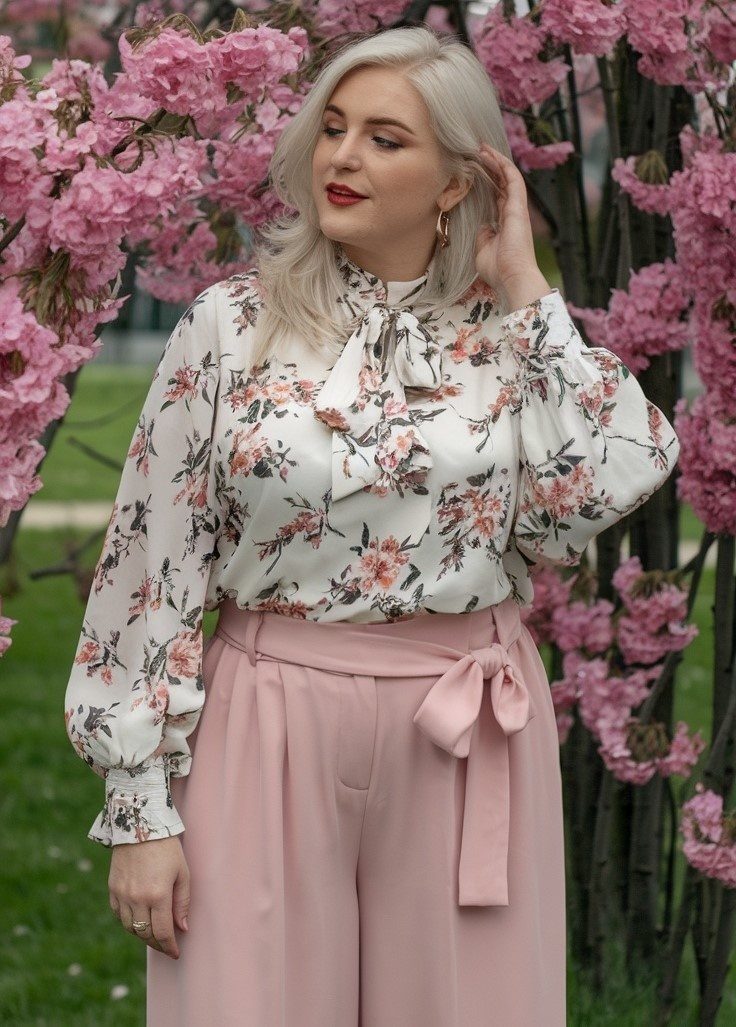 Блузка с цветочным принтом и брюки нежно-розового цвета — изысканный и нежный наряд который непременно понравится каждой моднице плюс-сайз. Нежный цветочный принт блузки добавляет свежести, а брюки с высокой талией создают привлекательный силуэт, выгодно подчёркивая фигуру.