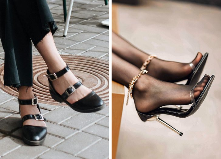 Базовые лодочки — это скучная классика. Именно так могли бы сказать модницы, которые знают, что в этом сезоне туфли Мэри Джейн и другие модели с ремешками на пике популярности. Еще бы, ведь они невероятно удобные и элегантные! Но самый горячий хит — это ремешки и браслеты на щиколотках. К сожалению, они могут визуально «резать» рост, но есть альтернатива — перекрещенные ремешки спереди.