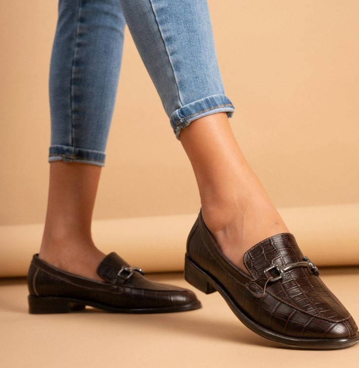 Эта модель обуви в огромном количестве представлена в коллекциях «Весна-лето 2025». Чаще всего это лоферы из мятой кожи и с квадратными носами. Любители экспериментов могут выбрать туфли на шнуровке или лоферы с ремешками, украшенными золотистыми колечками.