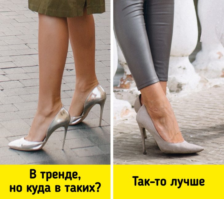 Обувь с круглым носком, за исключением туфель Мэри Джейн, уже отжила свое. В этом году даже не стоит на них тратиться, а уже имеющиеся лучше отложить в дальний ящик. Сейчас на пик популярности вновь вернулся квадратный носок в стиле 90-х. Но если кажется, что такая модель чересчур экстравагантна для вас, то можно выбрать остроносую обувь. Кстати, такие модели визуально удлиняют ноги.