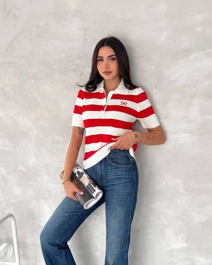 Тут главная задача — грамотно соединить, казалось бы, несочетаемые вещи либо создать интересный многослойный образ. Вариант для любительниц экспериментировать, точно не для скромниц или почитательниц строгого классического стиля. «Это может быть шелковая юбка в пол, хлопковая юбка в бохо-стиле. Может быть и многослойность, когда на одно поло надевается на другое, либо поло с коротким рукавом сочетается с лонгсливом. Поло можно пробовать надевать и под различные платься. Получится этакая „абра-кадабра“, которая, вроде бы и не сочетается друг с другом, но в целом смотрится здорово», — рекомендует стилист.5. Поло в полоску + что угодно
