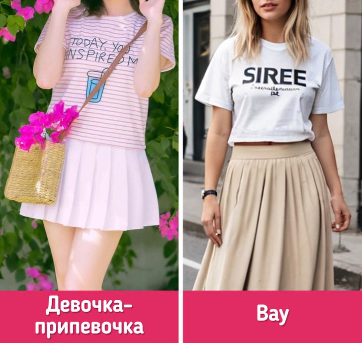 Футболки с ярким принтом лучше носить с юбками миди