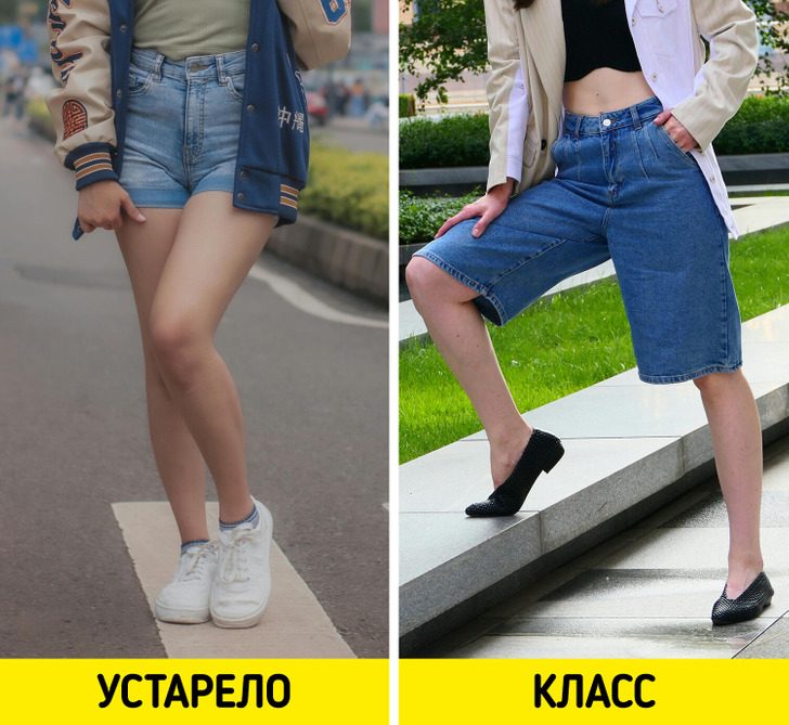 Удлиненные шорты уже давно стали неотъемлемой частью повседневного гардероба. Главное — научиться грамотно сочетать их с остальной одеждой. Вместо устаревших блузок лучше выбирать оверсайз-рубашки, лаконичные майки или топы с интересным принтом — так образ будет выглядеть современно и свежо.