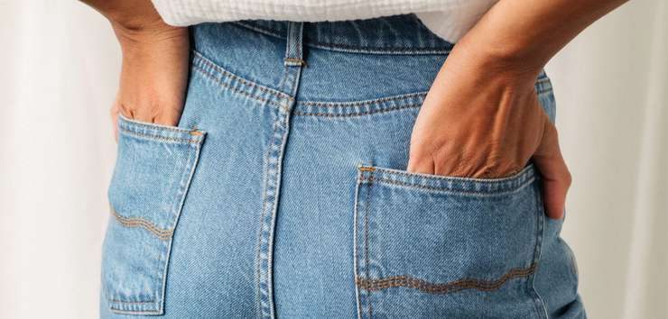 «Слишком большие или слишком низкие карманы визуально опускают „форму“. Наклон карманов тоже важен: вертикальные стройнят, диагональные — расширяют. Всегда смотрите на джинсы сзади в примерочной или попросите подругу или консультанта сделать фото, чтобы убедиться, что все хорошо», — утверждает стилист.