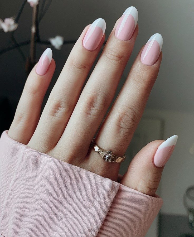 Современный вариант классического французского маникюра с нежно-розовым покрытием, украшенный белыми кончиками, которые воплощают свежую и элегантную весеннюю эстетику. Простота этого дизайна делает его универсальным и идеальным для тех, кто ценит минимализм, но стремится к тому, чтобы маникюр выглядел стильно.