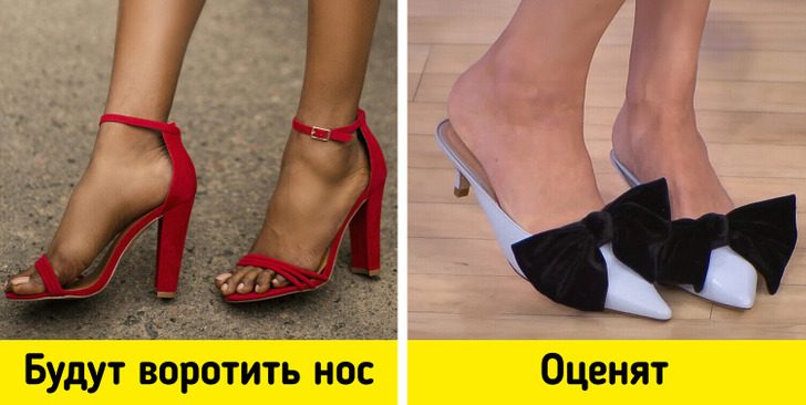 А вот на туфли или босоножки на каблуке, богато украшенные стразами или пышными бантами, француженки и не взглянут. К такой обуви сложно подобрать подходящий наряд, да и выглядит она слишком броско. А большие банты создают излишне девчачий и немного детский образ.
