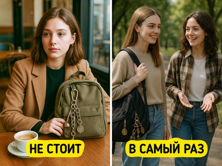 Эксперты утверждают, что перекладывание сумки из руки в руку может восприниматься так, будто вам наскучил собеседник, и вы хотите поскорее уйти.