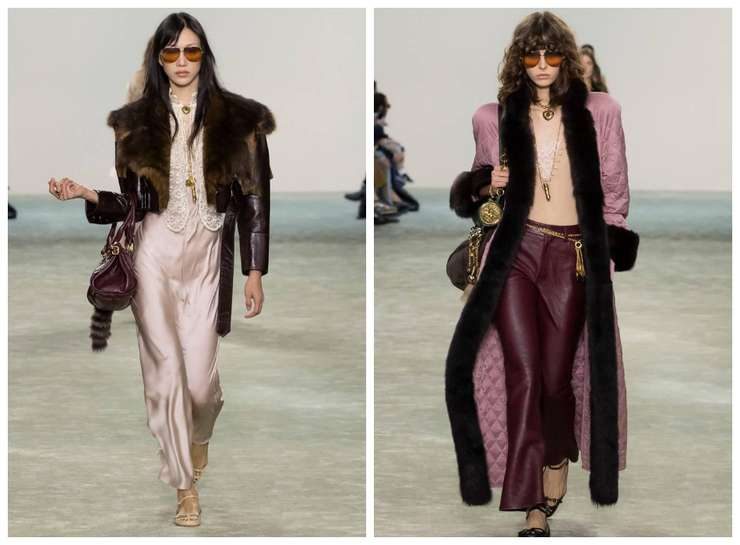 В своем показе Chloe весна-лето 2025 демонстрирует комфортные образы в стиле мотобохо. Кожа отлично соседствует с прозрачными тканями, а меха прекрасно сочетаются с кружевными и шелковыми материалами, формируя многослойный ансамбль. Ремни на бедрах и подвешенные украшения завершают картину, придавая облику игривую энергию и легкое дыхание романтики странствий. Все это смотрится стильно, современно и абсолютно совершенно. И возникает в голове картина, будто после показа каждая из моделей сядет на свой байк и уедет навстречу ветру и вечной свободе.