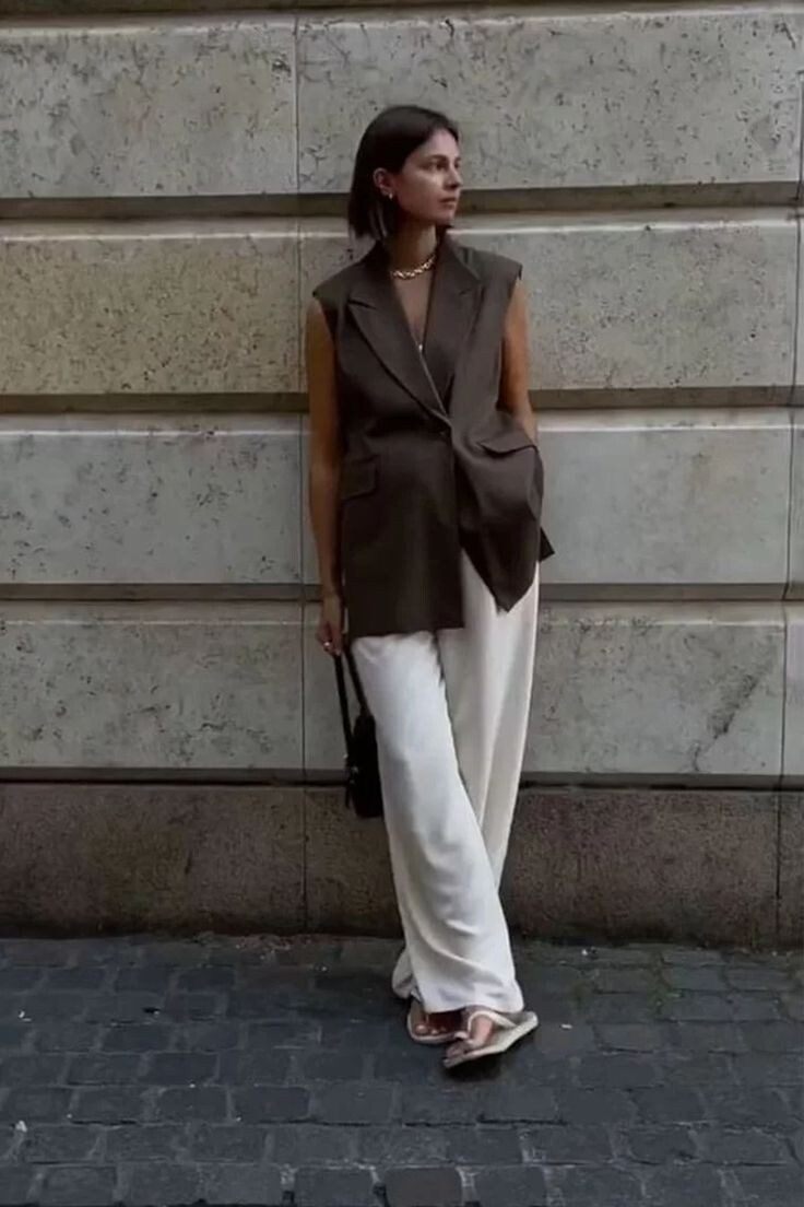 Костюмные жилетки уже который сезон имею большую популярность, но простой прямой жилет пусть и не столь массовый тренд, но более харизматичный, он больше про индивидуальный стиль и относится к долгим трендам, имеет способность балансировать образ в более собранный, элегантный.