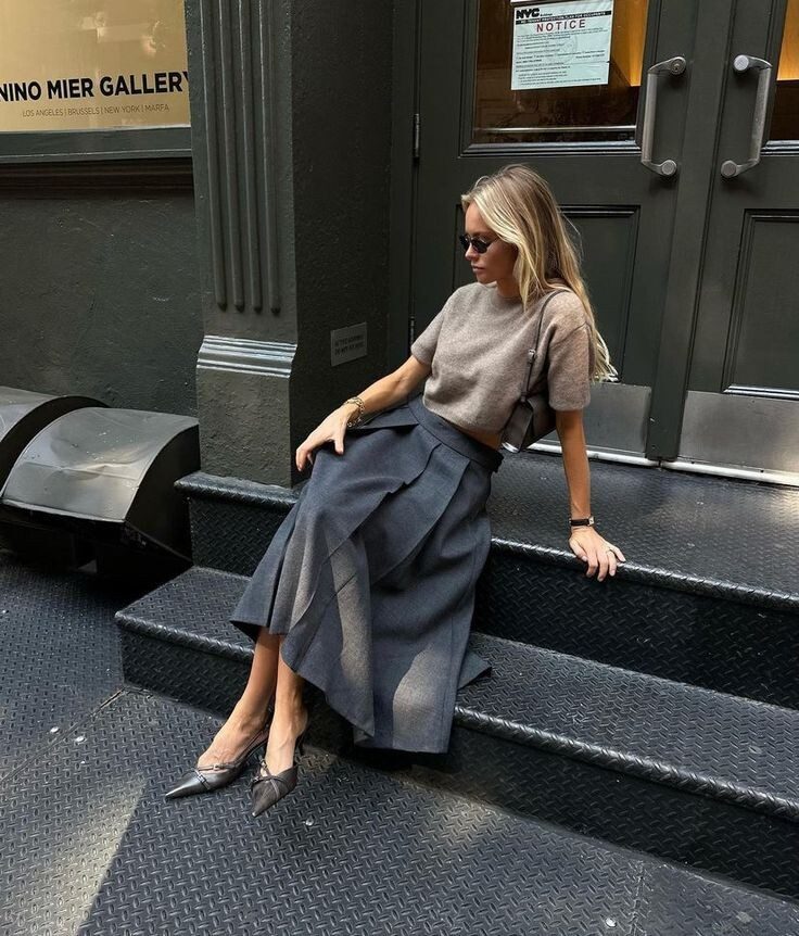 Казалось бы, плиссировка уже уступила место другим трендам, но юбки в складку вновь возвращаются в модную игру. Широкая складка в плотной ткани это прекрасный вне возрастной вариант, замечательно ложится в образ как с простыми базовыми вещами так и более яркими, фактурными.