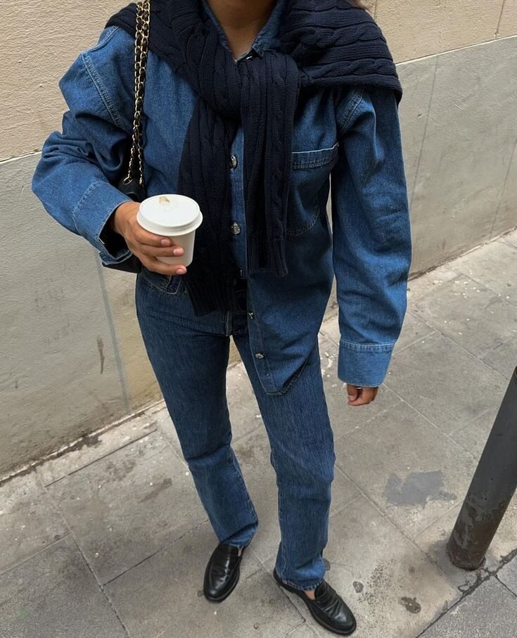 Деним практически всегда возглавляет списки главных тенденций сезона, а бренды лишь смещают акцент с одного элемента на другой (в зависимости от погодных условий ). Но неизменно с нами остаются простые по цвету и крою комплекты: джинсовая рубашка и джинсы, которые легко ложатся в образы практически с любой вариацией верхней одежды
