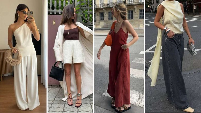 Асимметричный топ или топ с необычным кроем, прямые джинсы (или кожаные), мюли/ботильоны/сандалии с характером. Добавь сумку интересной формы — и пусть он гадает, кто ты: дизайнер, писательница или просто магия.