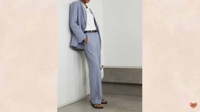 Молочный вместо чёрного. Бежевый, кремовый, слоновая кость подсветят пастель и добавят образу статусности. Например: персиковый жакет + кремовые брюки + золотые аксессуары.