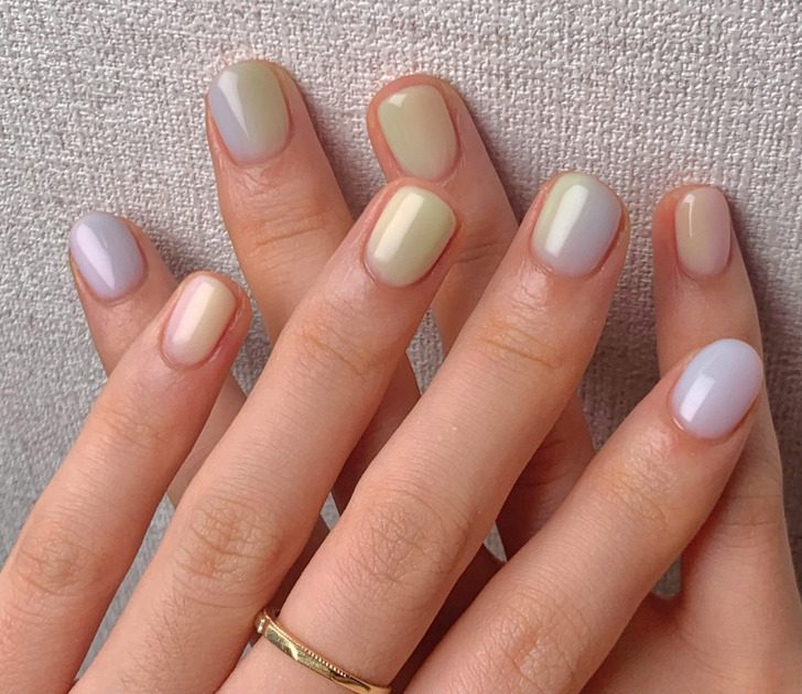 Ногти-мармеладки продолжают оставаться в трендах этим летом. Пастельные оттенки, полупрозрачная основа, легкие переходы цветов. Все это позволяет сочетать такой маникюр с разными образами, что делает его не просто эстетичным, но и достаточно универсальным.