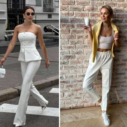 Белый цвет будто создан для жаркого лета. Он всегда смотрится элегантно и празднично. Особенной популярностью у дам всех возрастов пользуются белые брюки. В ТЦ и на маркетплейсах можно подобрать любую модель по приемлемой стоимости. Но при покупке ориентироваться лучше не на броские фото и знаменитый бренд, а на собственные параметры. Неудачный вариант не украсит, а исказит очертания фигуры. Главная опасность белого в том, что он способен полнить. Стилист Анна Савельева перечислила три основных правила выбора светлых брюк.