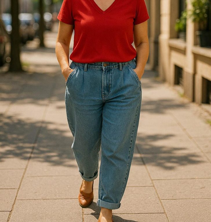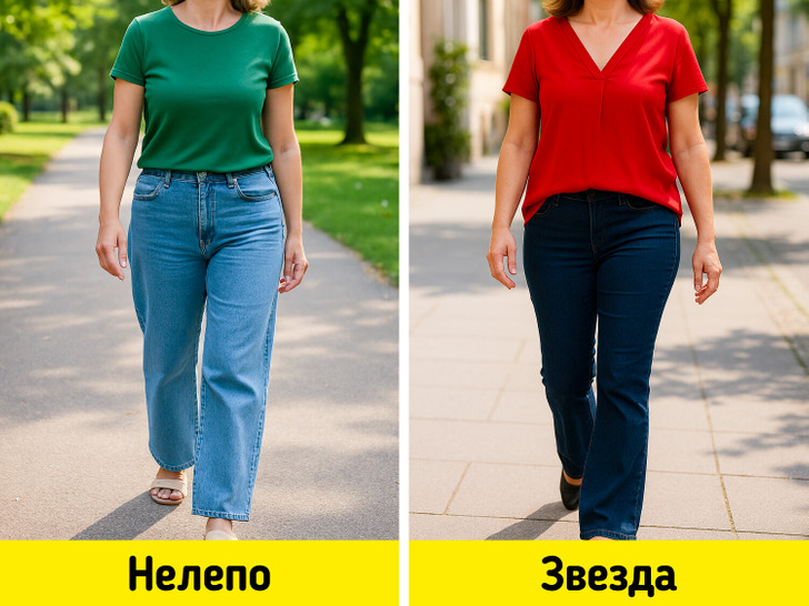 Дамам зрелого возраста эксперты рекомендуют, наоборот, подчеркивать фигуру. Но и здесь стоит чувствовать меру. Например, универсальный вариант — джинсы прямого кроя.