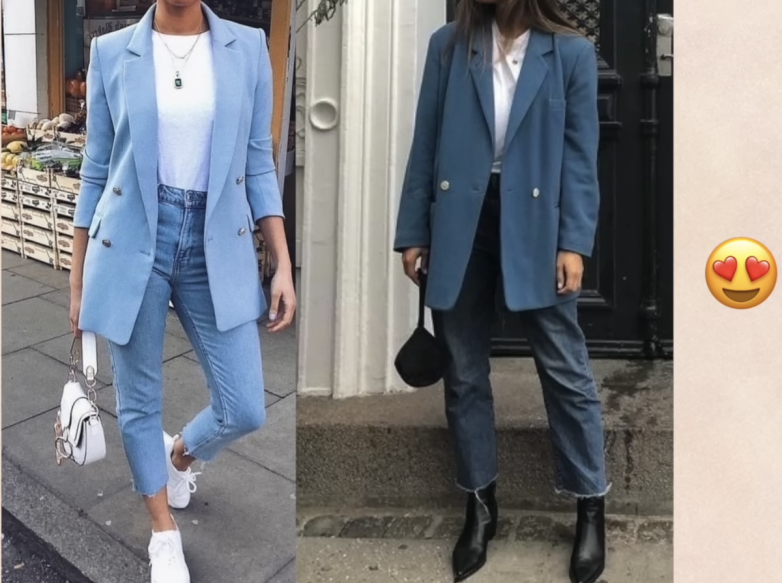 Смещайте акценты. Синие джинсы + бежевый свитер + красные туфли.Используйте вертикаль. Монохромный комплект (например, все оттенки синего) + яркий пояс на талии.