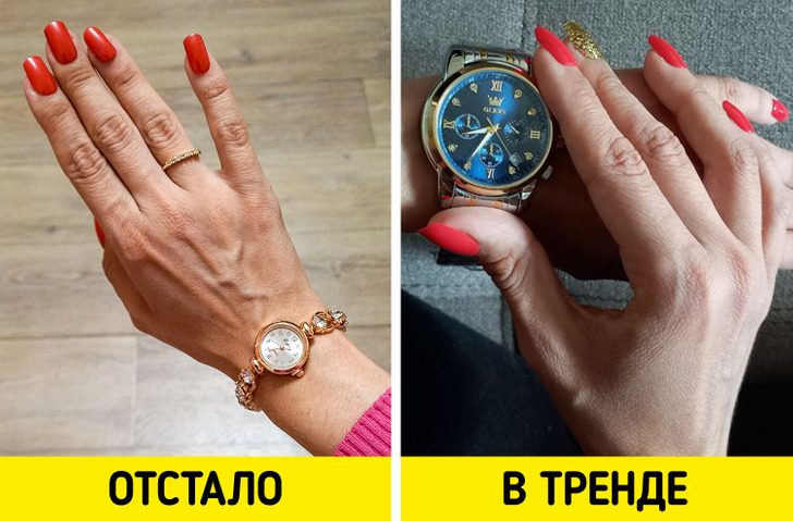 Кажется, что лучшим выбором для элегантной женской руки будут изящные часики с небольшим циферблатом. Однако эта форма уже прошлый век. В 2025 году в моде крупные наручные часы с широкими ремнями и крупными циферблатами, которые подходят как женщинам, так и мужчинам. Если не хочется выглядеть старомодно, маленькие часики лучше оставить тикать в магазине.