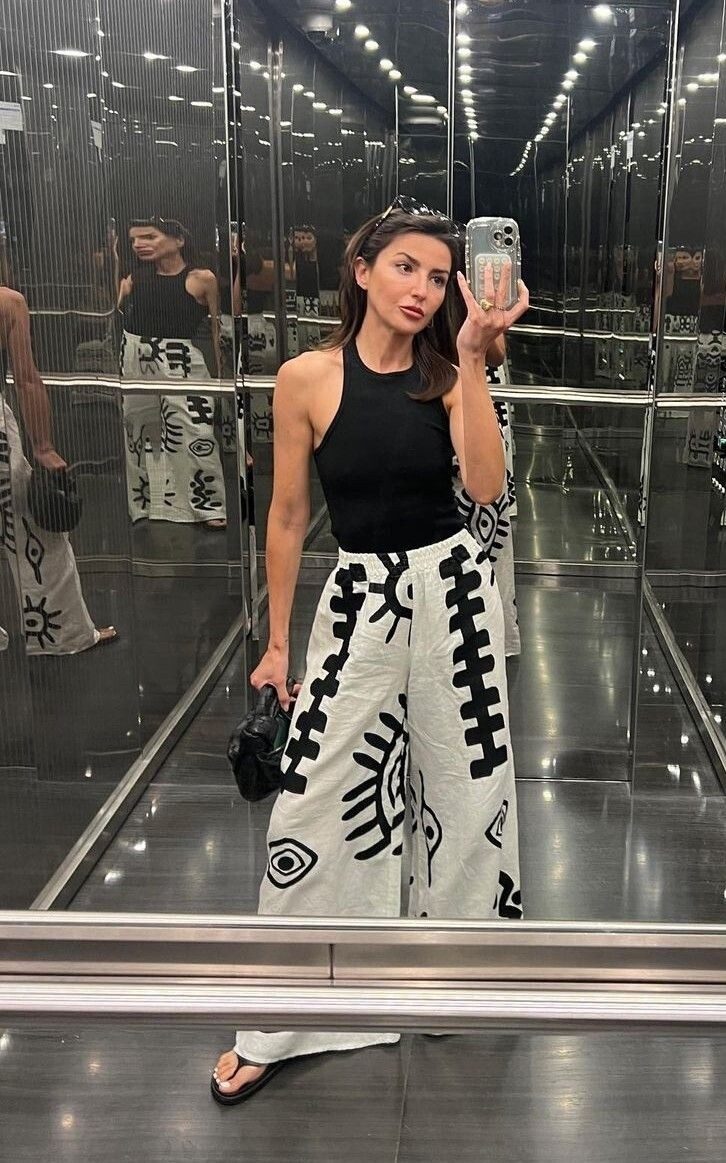 Даже минималисты не устояли, контрастный принт от полоски, горошка до абстракции. Считаю, отличная летняя альтернатива скучному низу