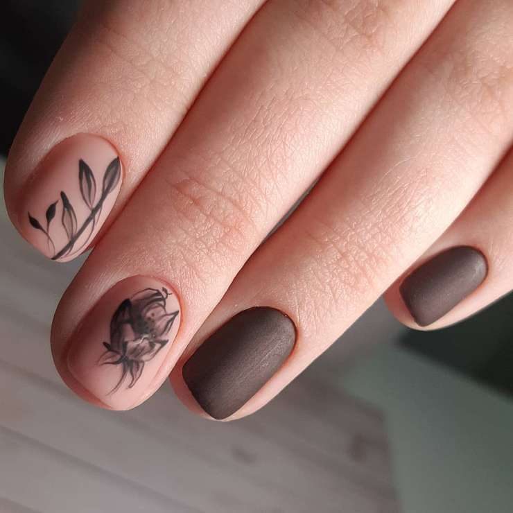 Шоколадно-кофейные цвета не выходят из моды круглогодично. И все же сейчас они будут особенно актуальны. Для любительниц аромата кофейных зерен и какао-бобов лучше не придумать. Допустим как классический вариант в глянце, так матовый, со сдержанным цветочным дизайном.