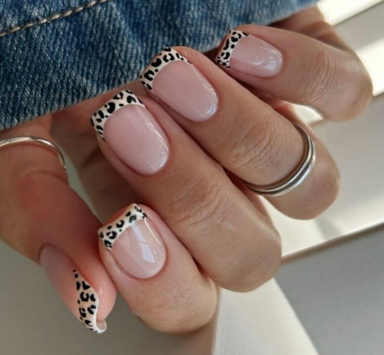 Леопардовый френч – дерзкая альтернатива классическому французскому маникюру. Благодаря спокойным черно-бежевым оттенкам такой дизайн долго не надоест.