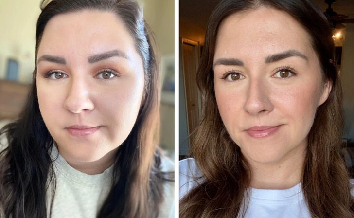 «Чуть больше года и 25 кг спустя. Честно, такое ощущение, будто у меня новое лицо»