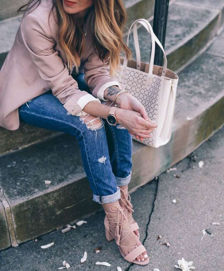 Молочно-розовые босоножки, пока тепло, ботильоны или кроссовки, когда похолодает — смелый, но очень эффектный выбор для осени. Такой цвет в обуви добавляет образу индивидуальности и мягко разбавляет строгие сочетания. Чтобы они выглядели органично, поддержите оттенок в аксессуарах или принте одежды. Такой прием поможет сделать образ целостным и в то же время — довольно нестандартным.